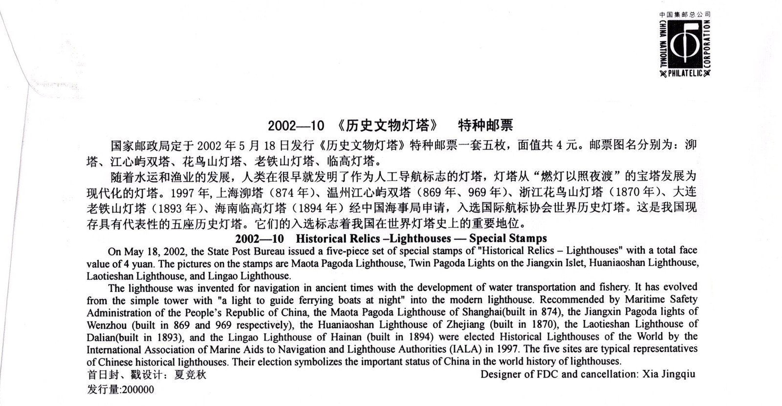 China PRC FDC Historical Relics, Lighthouses ZAYIX 0924M0703