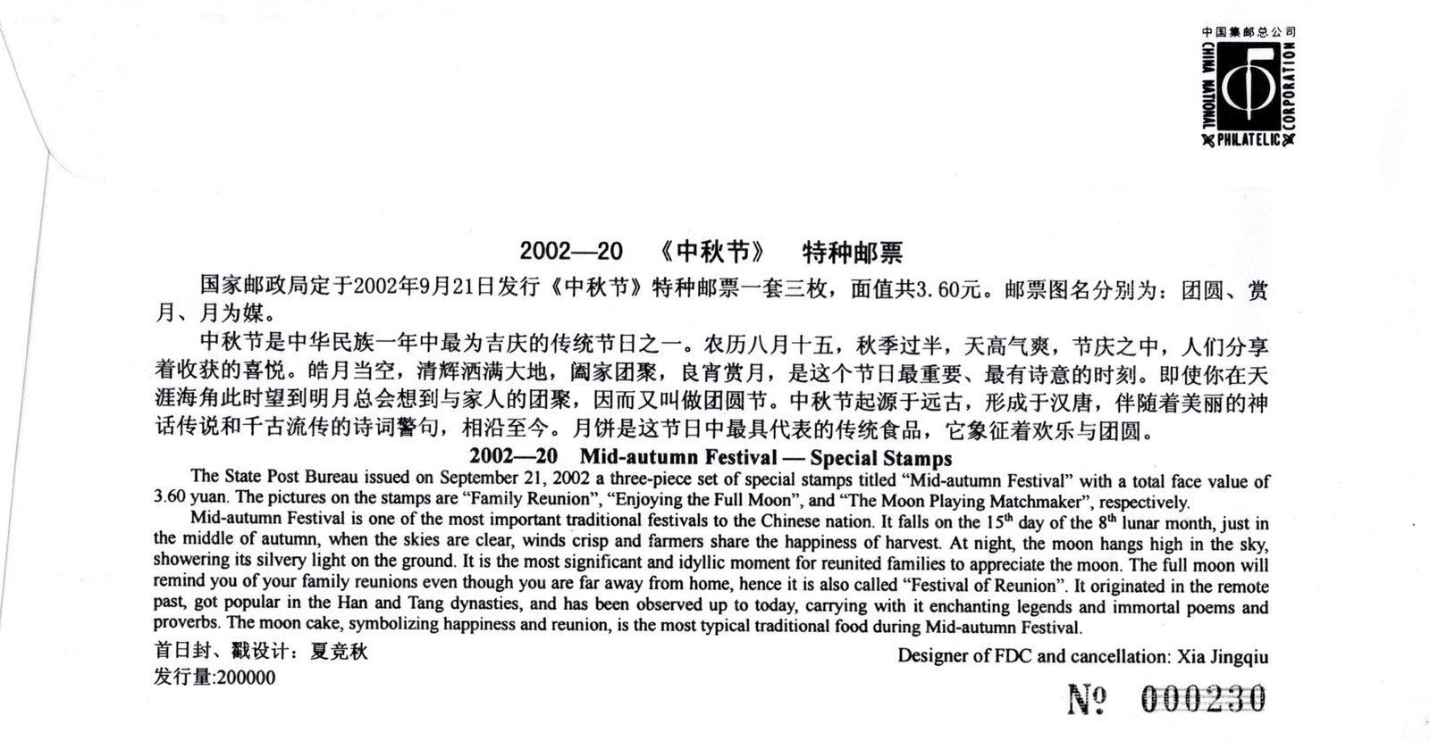 China PRC FDC Mid-Autumn Festival, Art ZAYIX 0924M0699