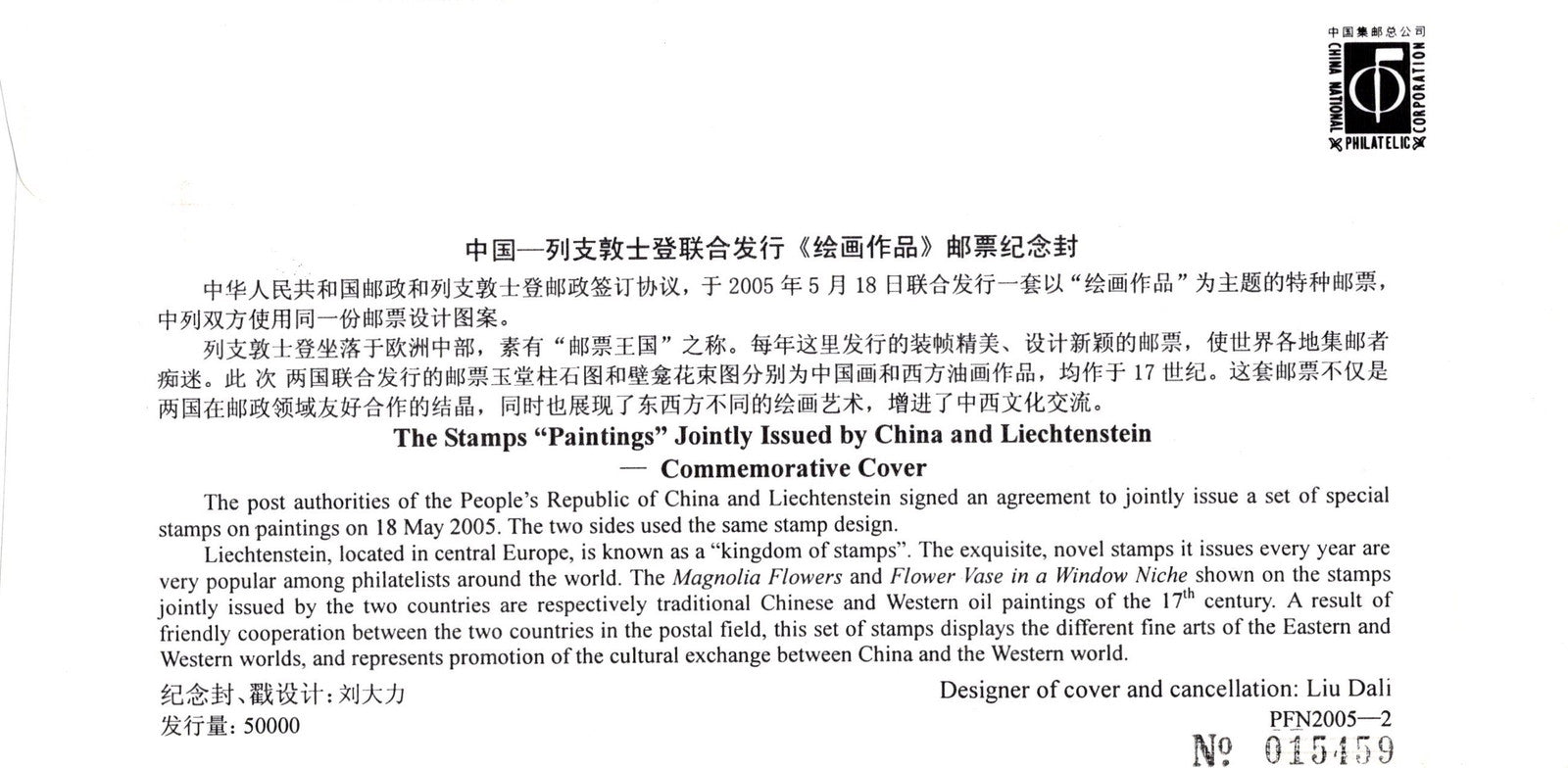 China PRC FDC Paintings Joint Issue LiechtensteinSTAMPS ZAYIX 0924M0550