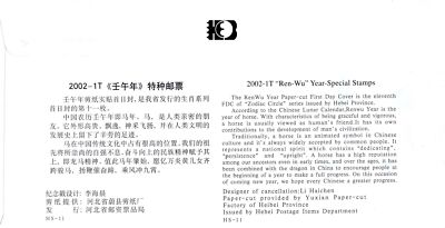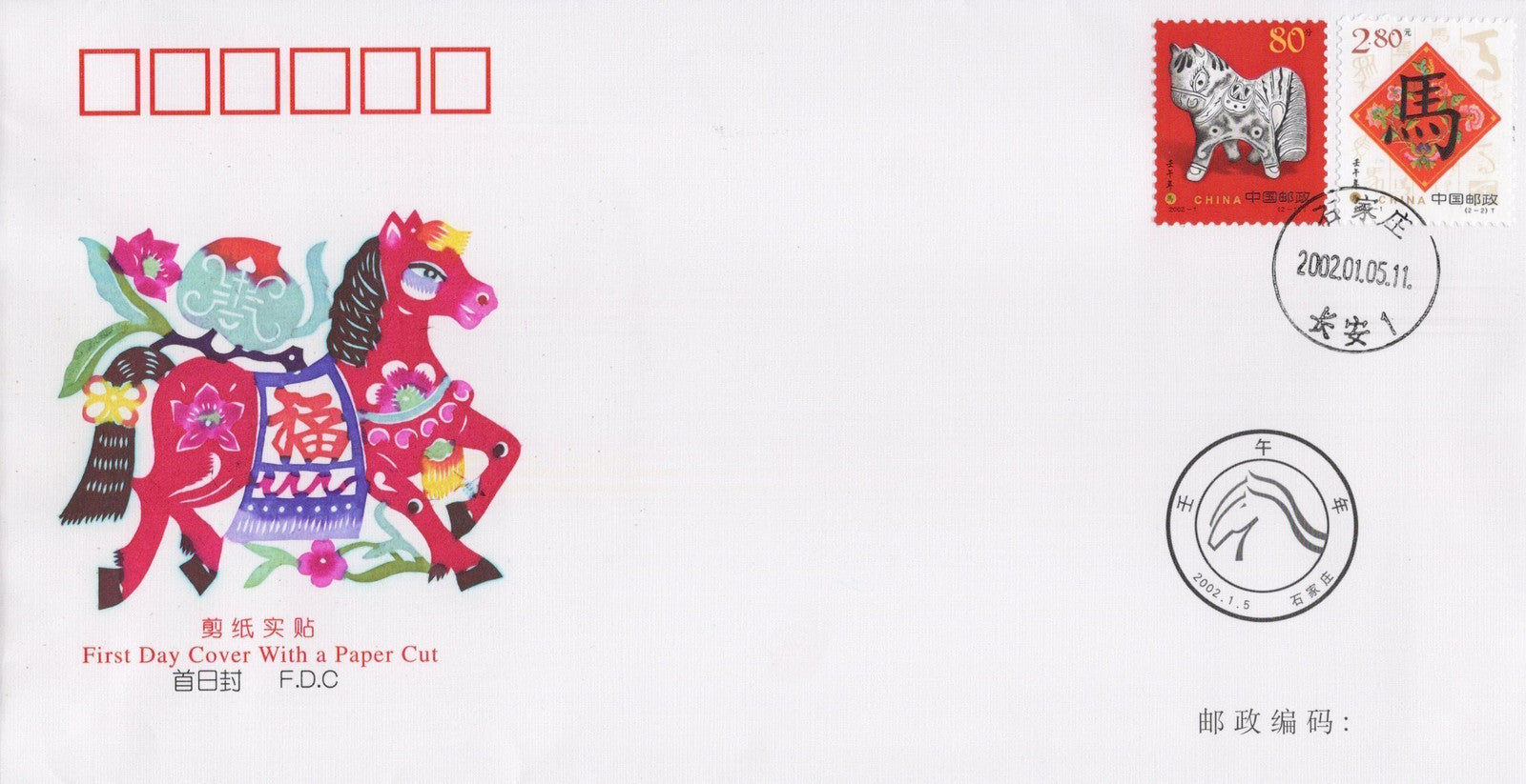 China PRC First Day Cover FDC Year of Horse Paper Cut 2002 ZAYIX 0924L0509