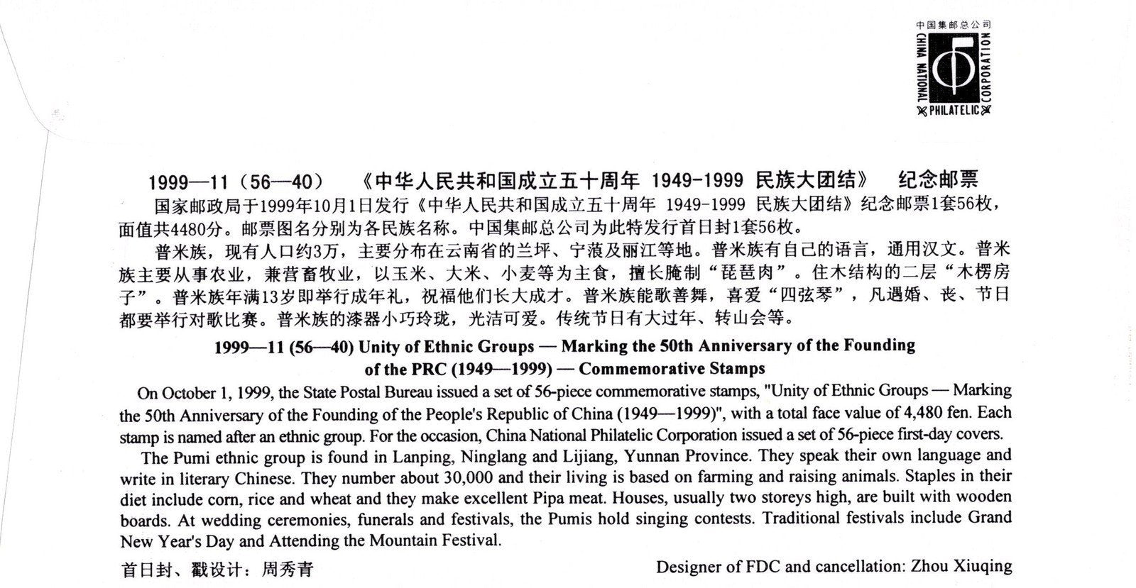 China PRC Unity of Ethnic Groups (56--40) FDC ZAYIX 0924M0680