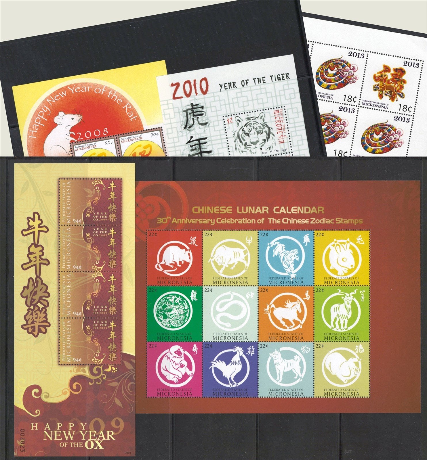 Micronesia MNH Collection of Lunar New Year themed stamps and sheets on 3 stock pages