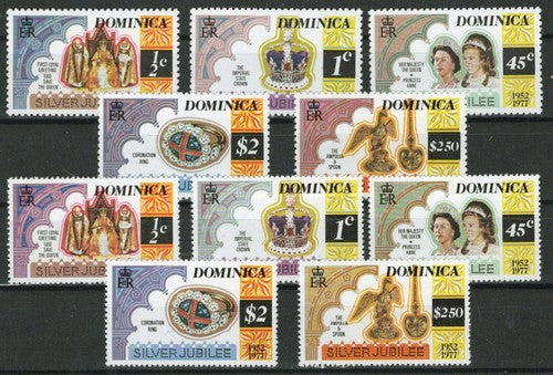 Dominica 521-525 MNH QEII silver jubilee perf & color variety ZAYIX 0224M0017M
