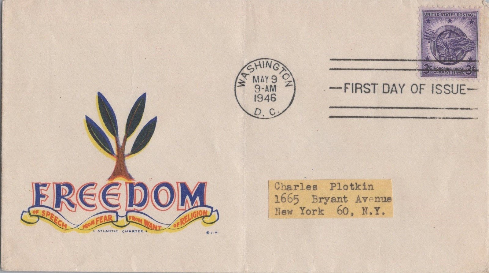FDC US 940 Jacques Minkus WWII Honorable Discharge Emblem ZAYIX 070422SM81