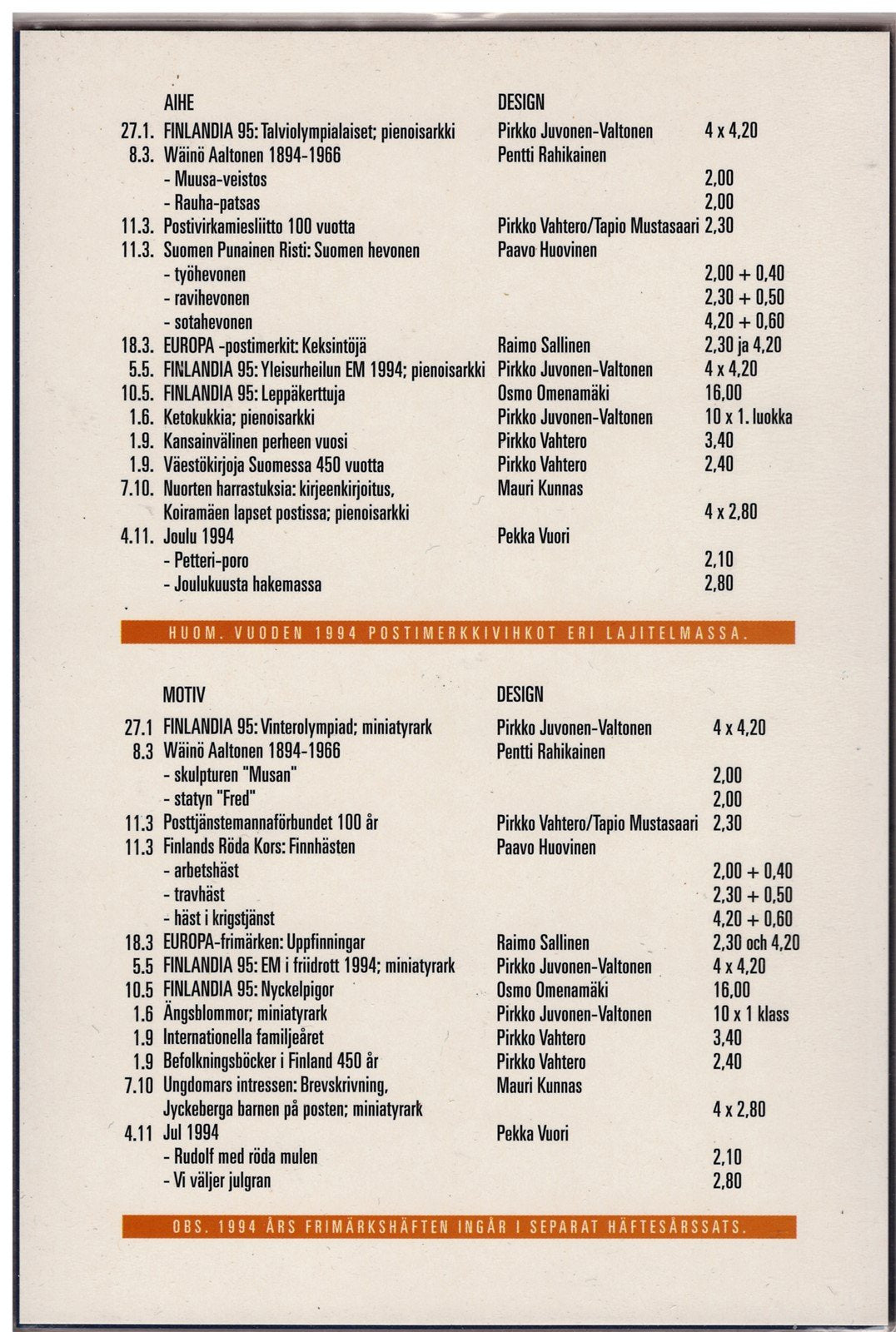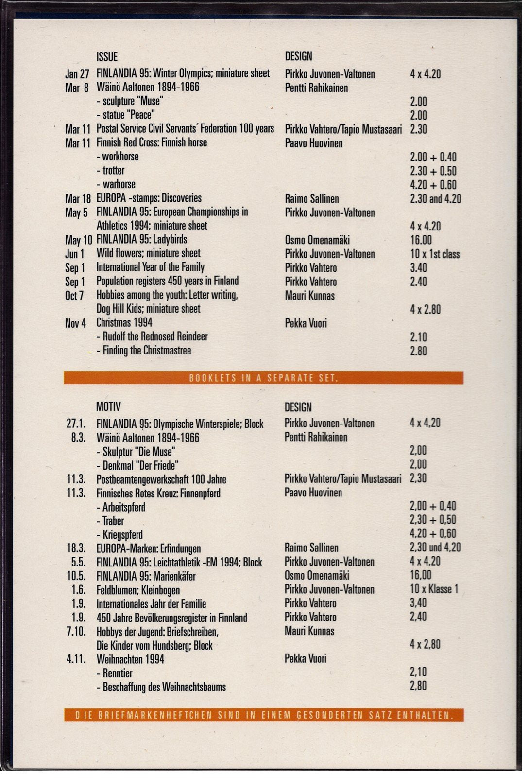 Finland 1994 Year Pack Official Year Set MNH Complete ZAYIX STAMPS 0625L0038
