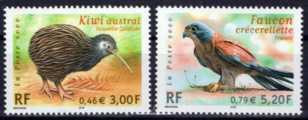 France 2790-2791 MNH Endangered Birds Falcons Kiwi ZAYIX 1024S0149M