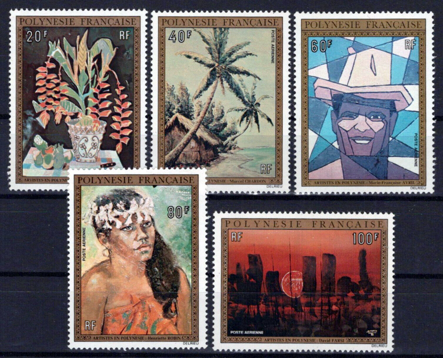 French Polynesia C107-C111 MNH Air Post Paintings Women Flowers ZAYIX 0524S0444