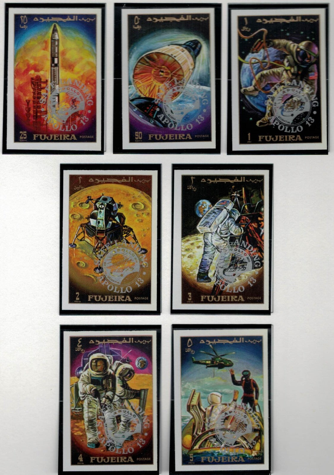 Fujeira UAE Mi 456-462B MNH Impf Space Apollo 13 silver ovpt ZAYIX 030222S28M
