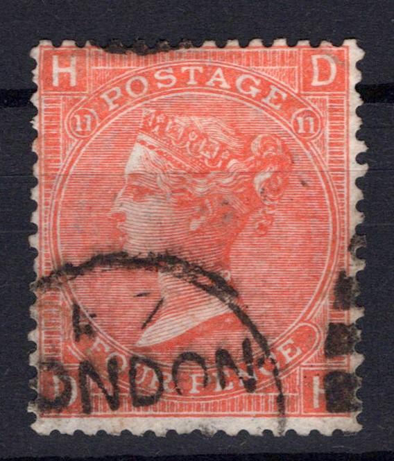 Great Britain 43, Plate 11 Used VF 4p Vermilion Victoria, duplex cancellation