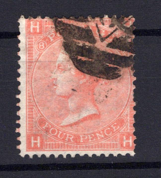 1865 Great Britain 43a, Plate 8 Used VF 4p Dull Vermilion Victoria, Diamond in barred circle