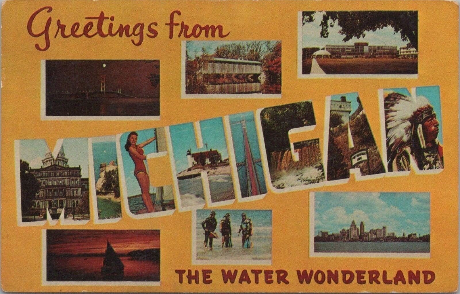 Greetings from Michigan Water Wonderland Tourism 083022PC33 Postcard ZAYIX