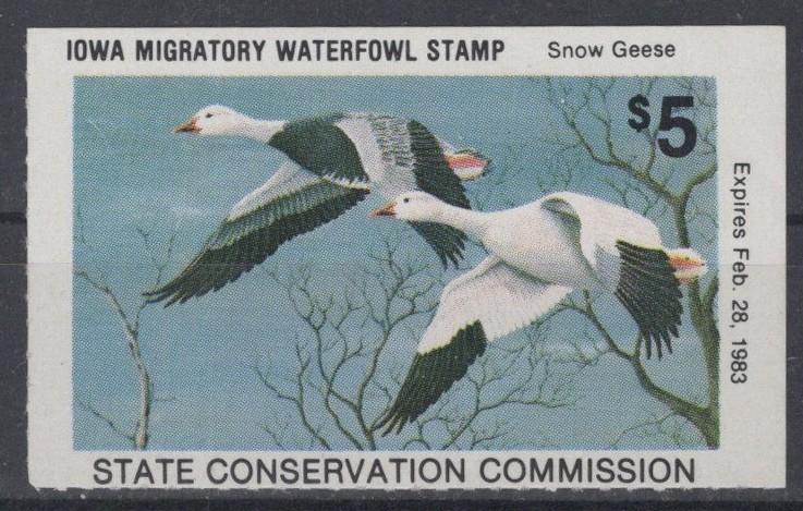 Iowa 11 (1982) MNH Very Fine, rouletted; $5 Snow Geese Hunting Permit Stamp