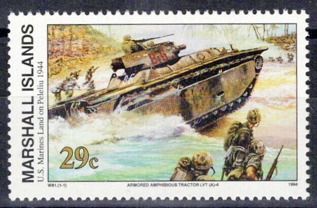 Marshall Islands 495 MNH WWII Marines Land on Peleliu, Tanks ZAYIX 0124S0076M