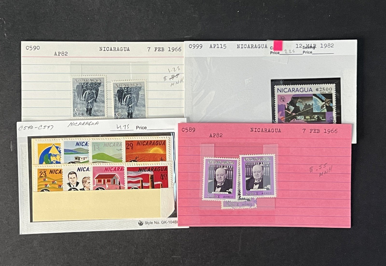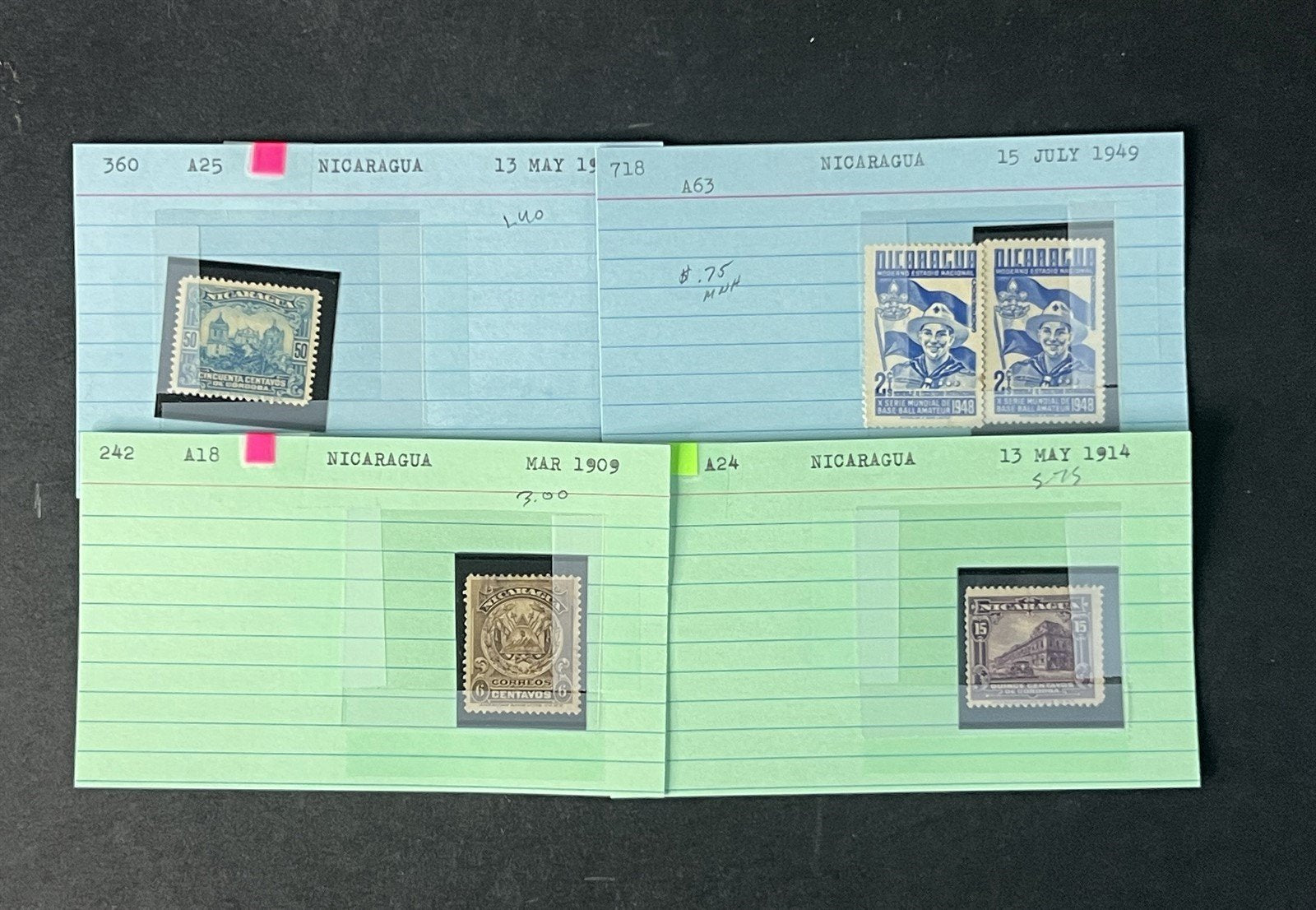 Nicaragua Box Collection $617 CV Dealer Cards Id'd by Scott# ZAYIX 0825G3891