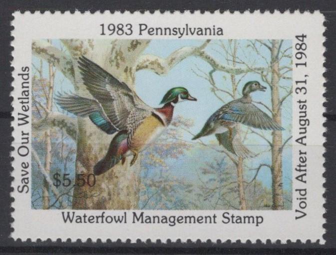 Pennsylvania #1 (1983) Mint Very Fine; $5.50 Wood Ducks Hunting Permit Stamp