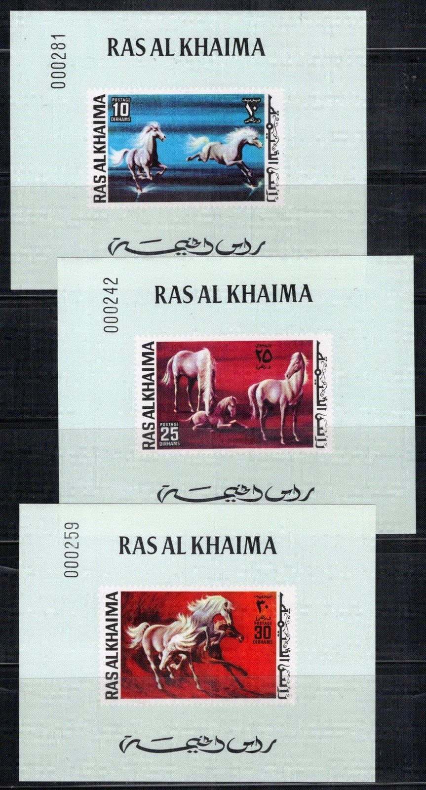 Ras Al Khaimah MNH Imperf deluxe sheet Horses ZAYIX 0125M0282M