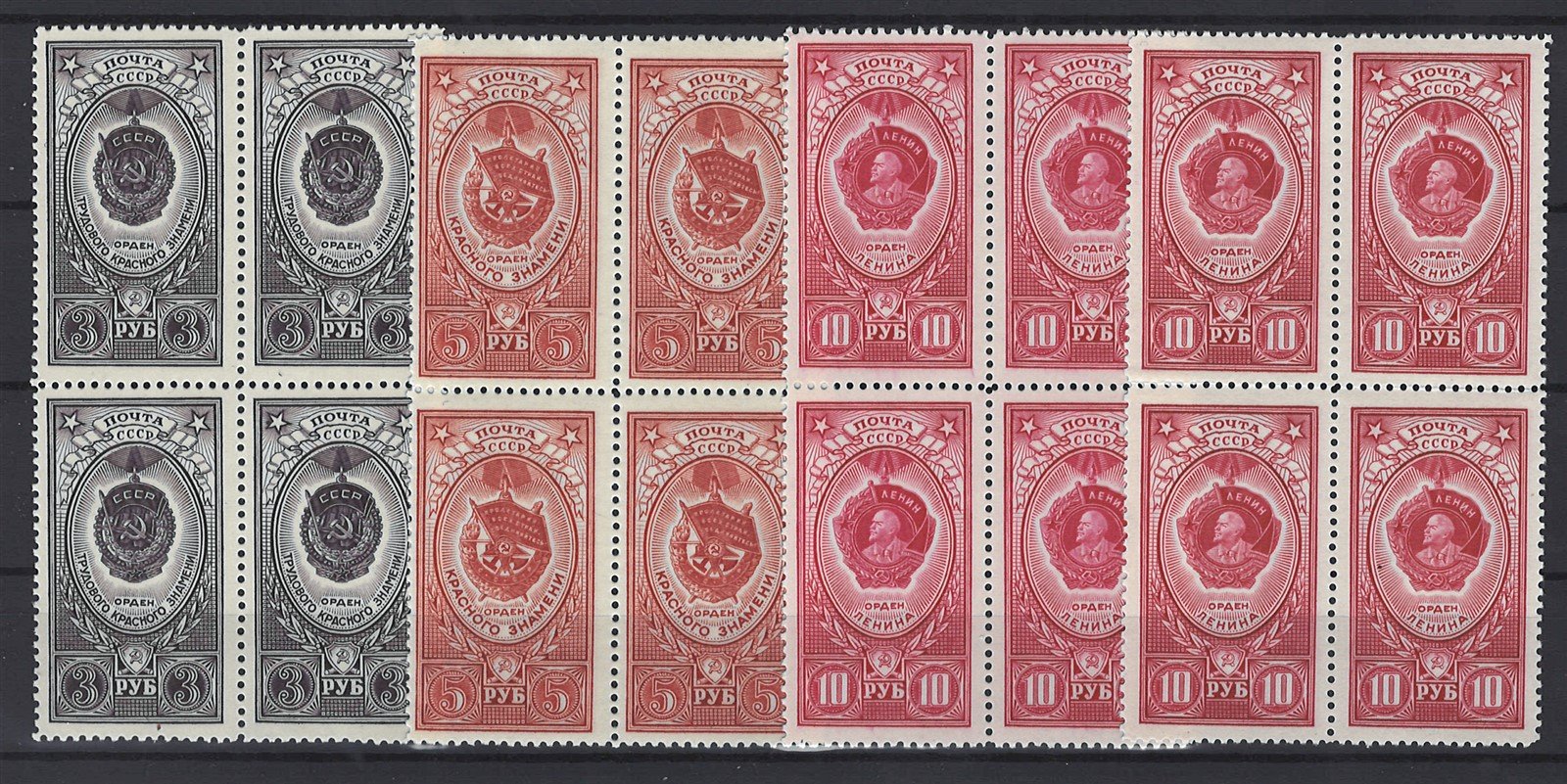 Russia 1652-1654, 1654a (dull red '59) MNH VF blocks