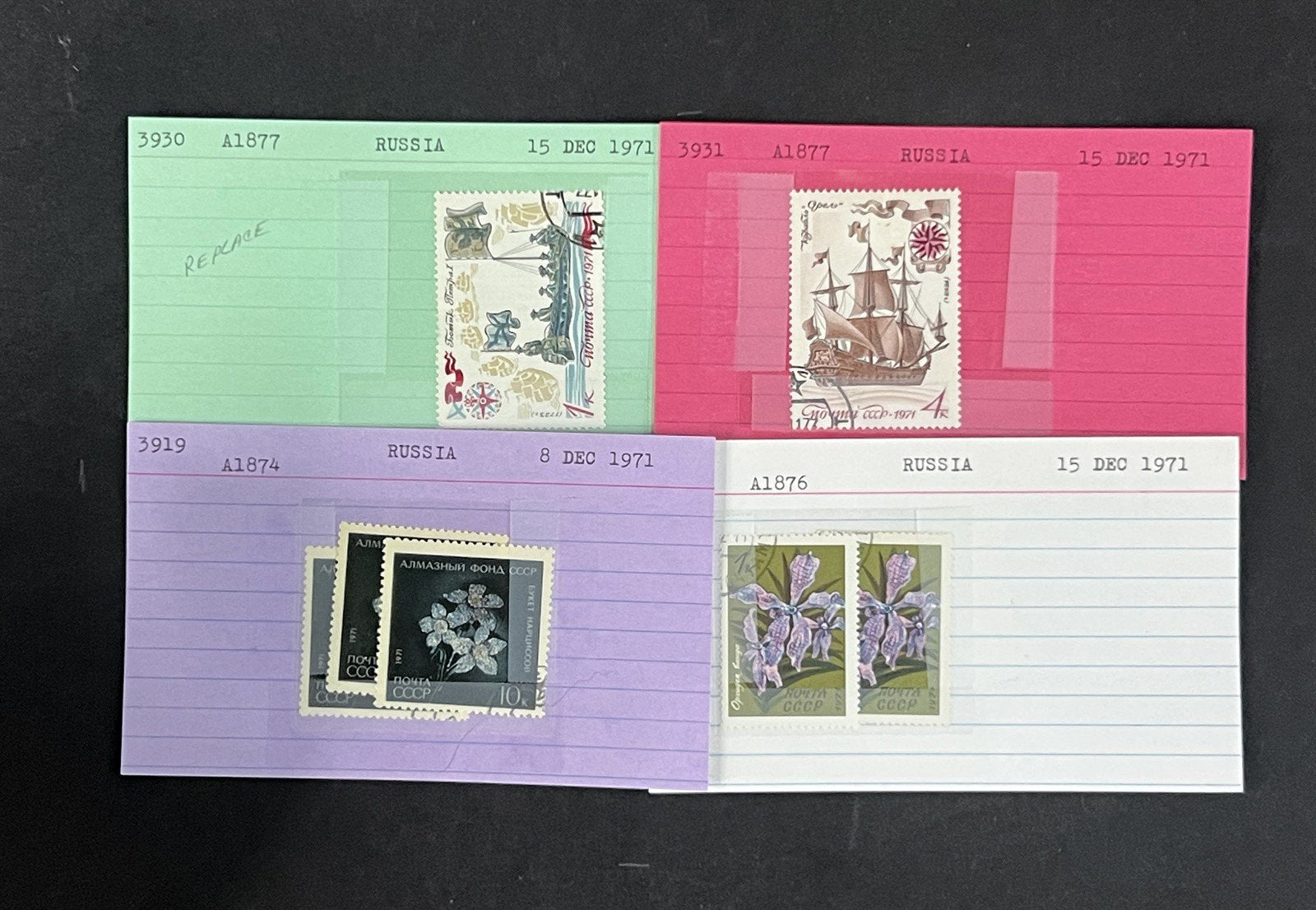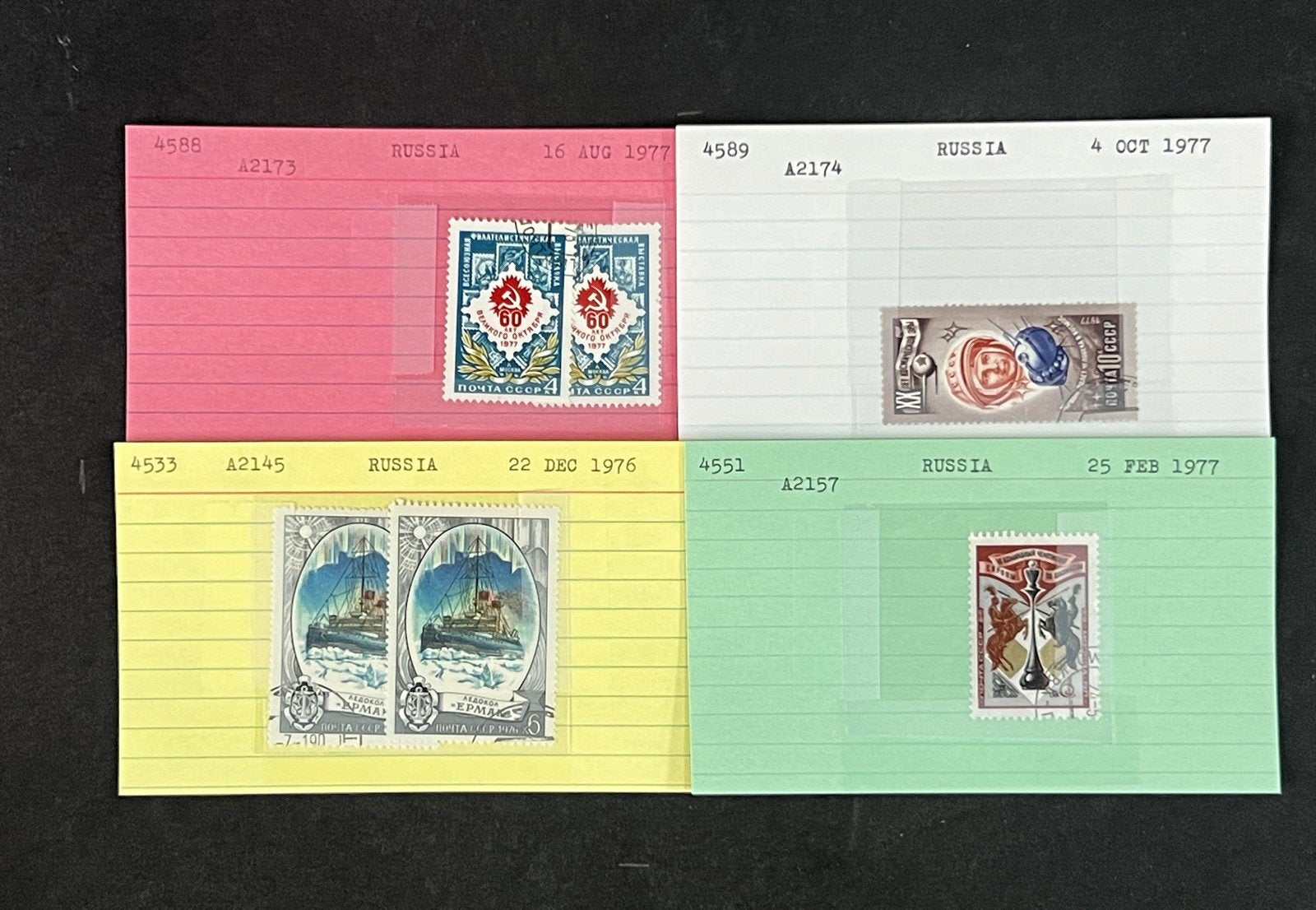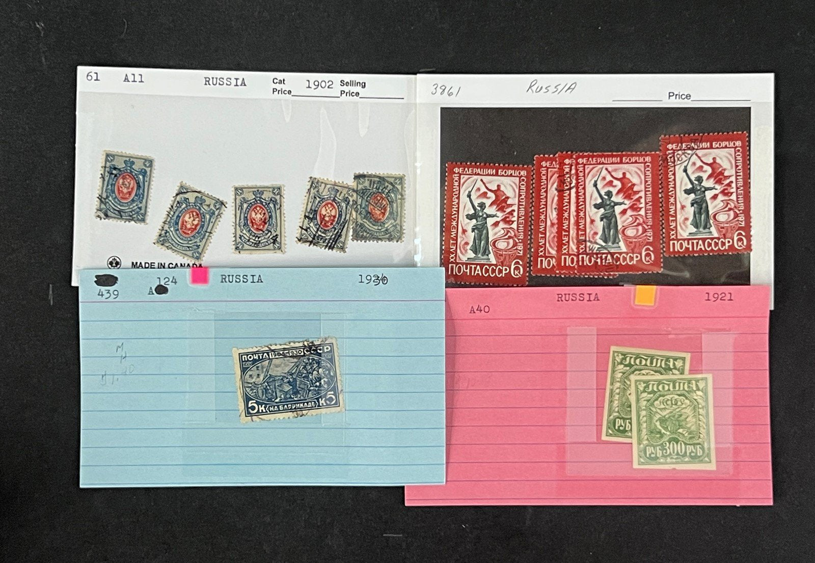 Russia Stamp Collection on Dealer Cards