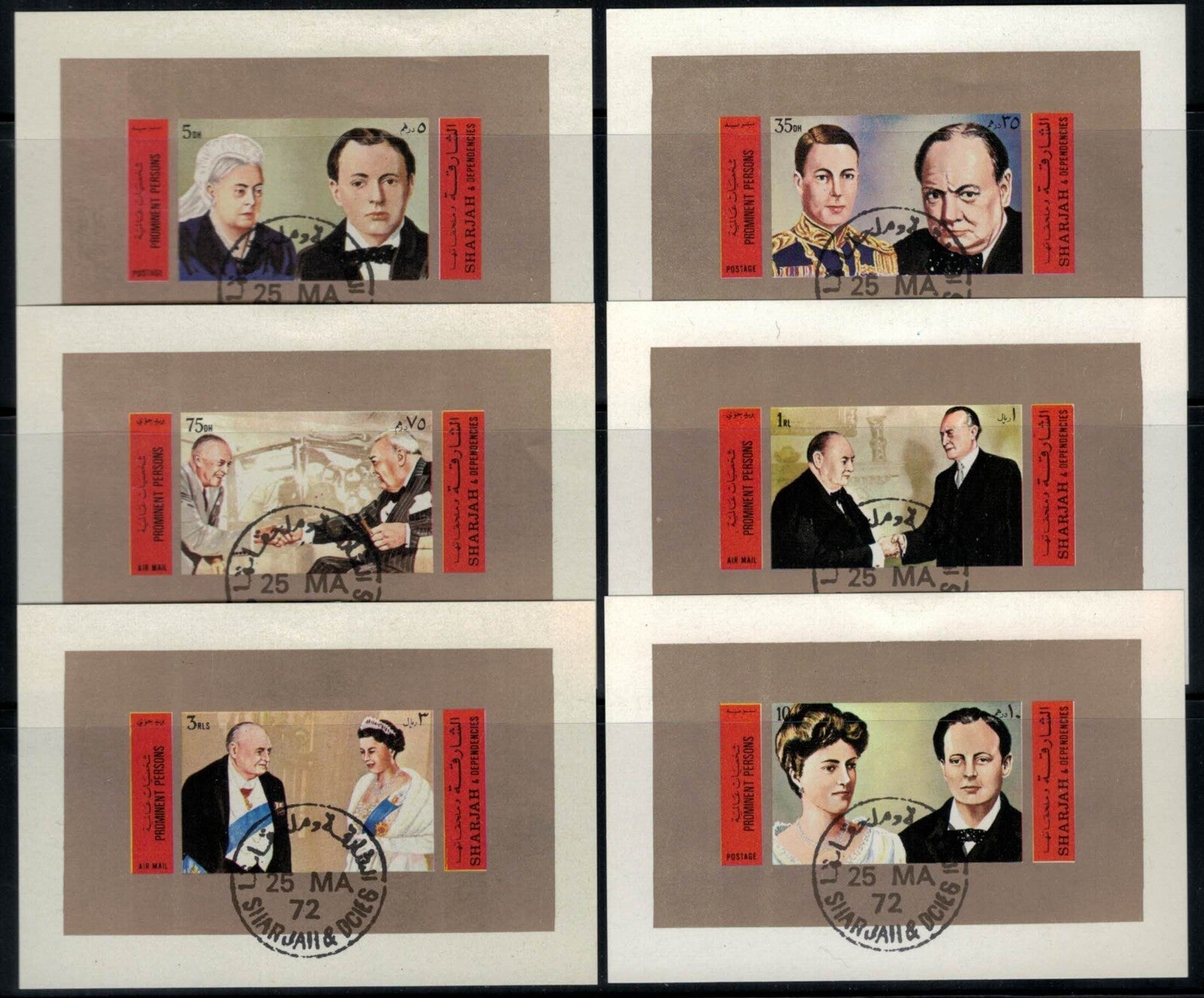 Sharjah UAE Mi 889-894 CTO Imperf. Deluxe Sheets Churchill ZAYIX 030822S50