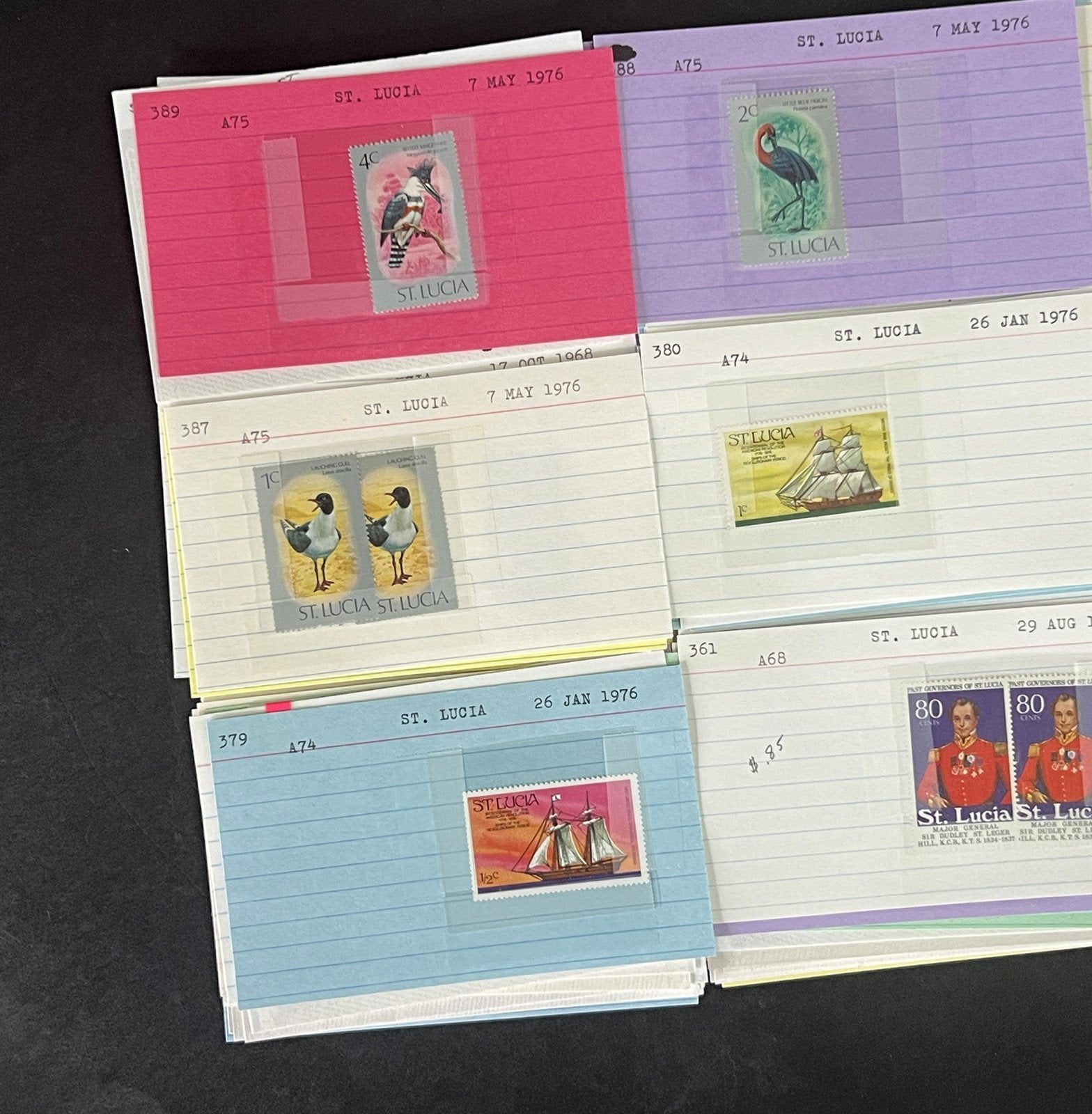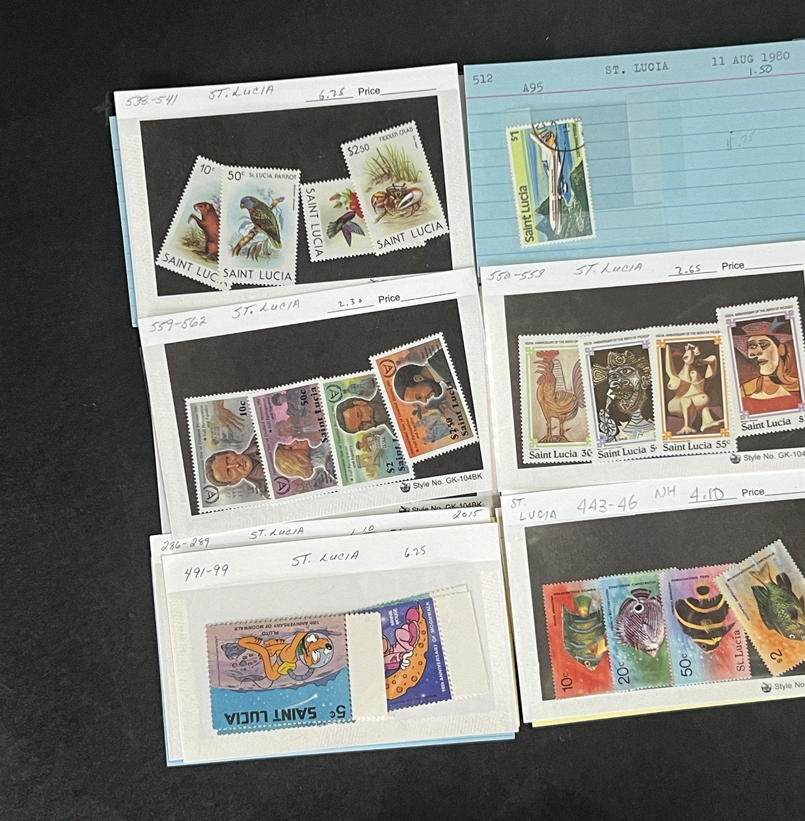 St. Lucia Stamp Collection on Dealer Cards $327 Catalog Value ZAYIX 0825CB14518