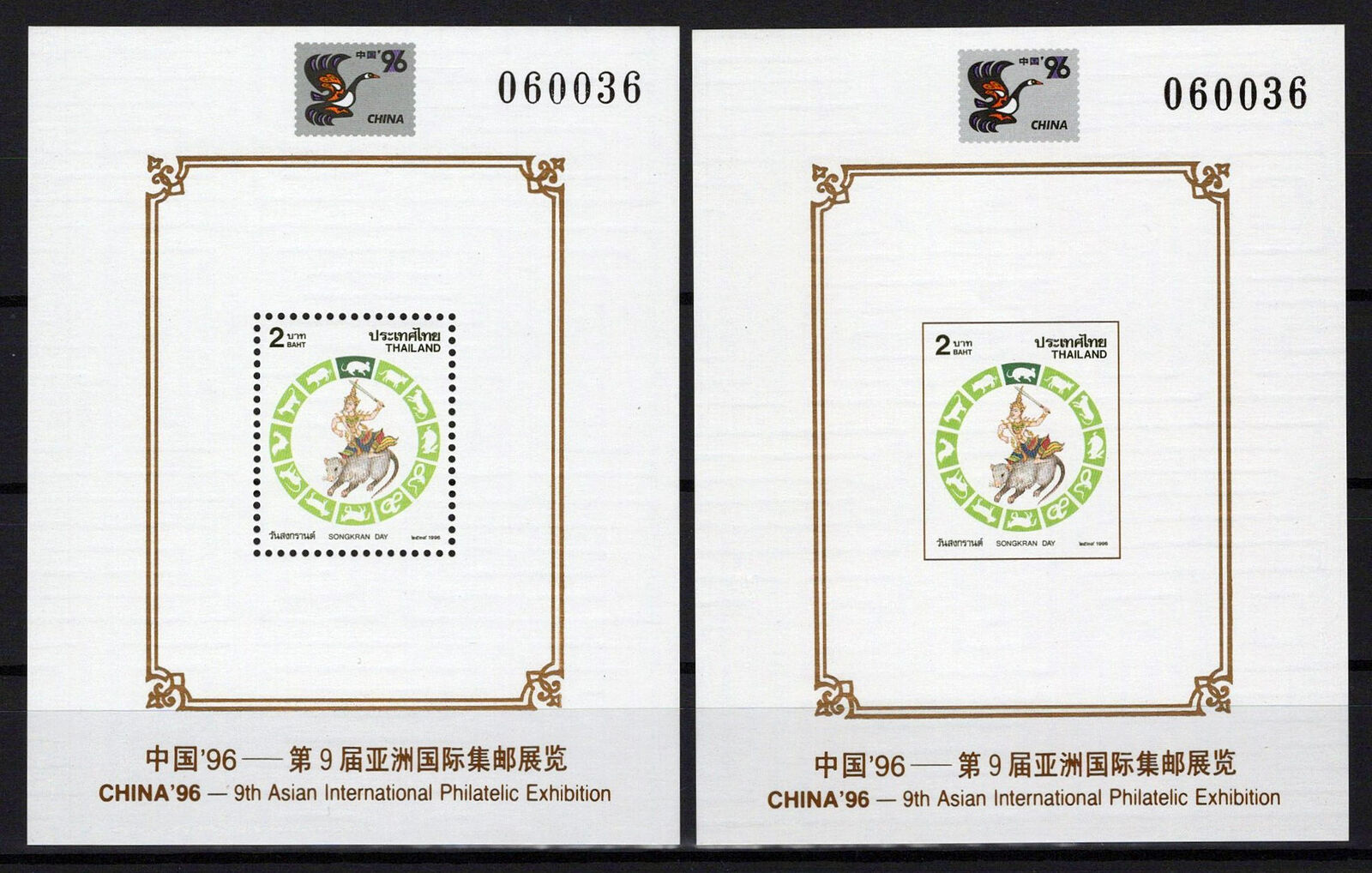Thailand 1662c MNH Perf, Imperf China '96 Zodiac Rat Astrology
