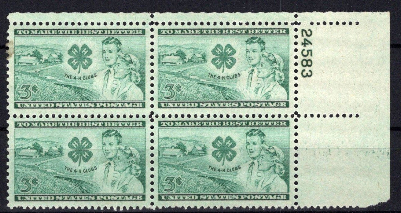 United States 1005 MNH Plate Block 4-H Club Farming ZAYIX STAMPS 0825S1629