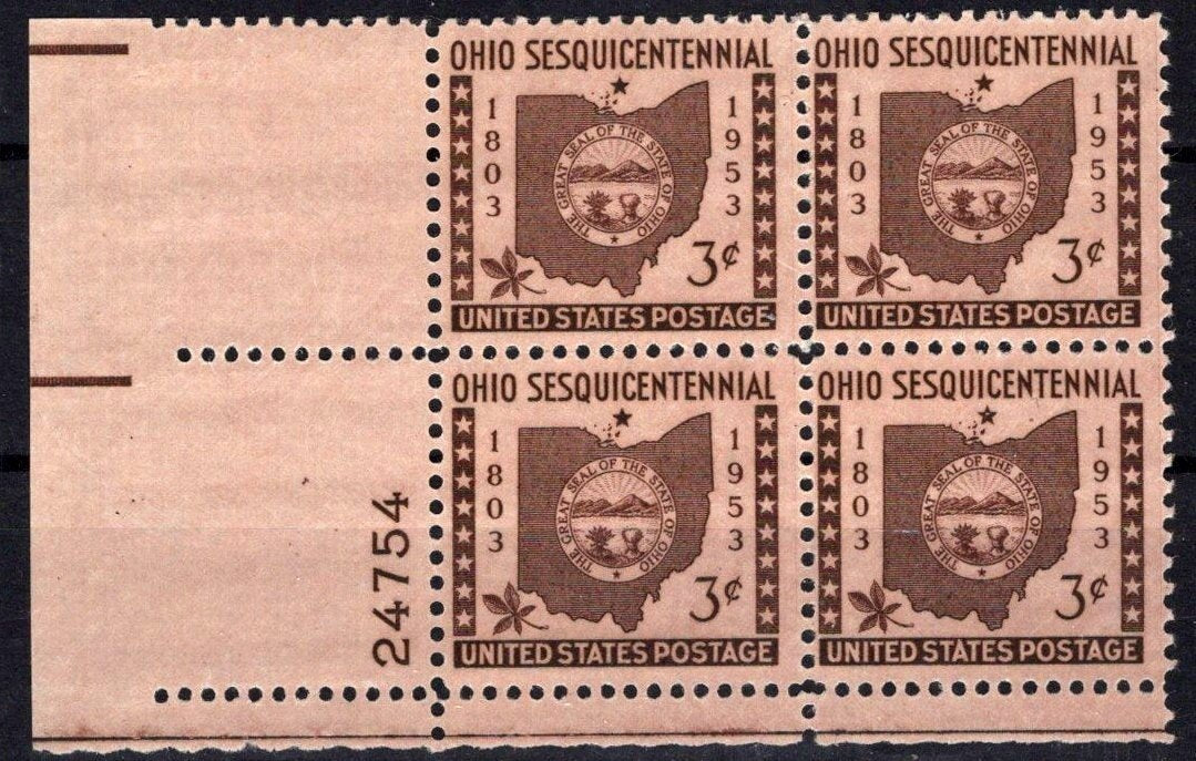 United States 1018 MNH Plate Block Ohio Statehood ZAYIX STAMPS 0825S1642