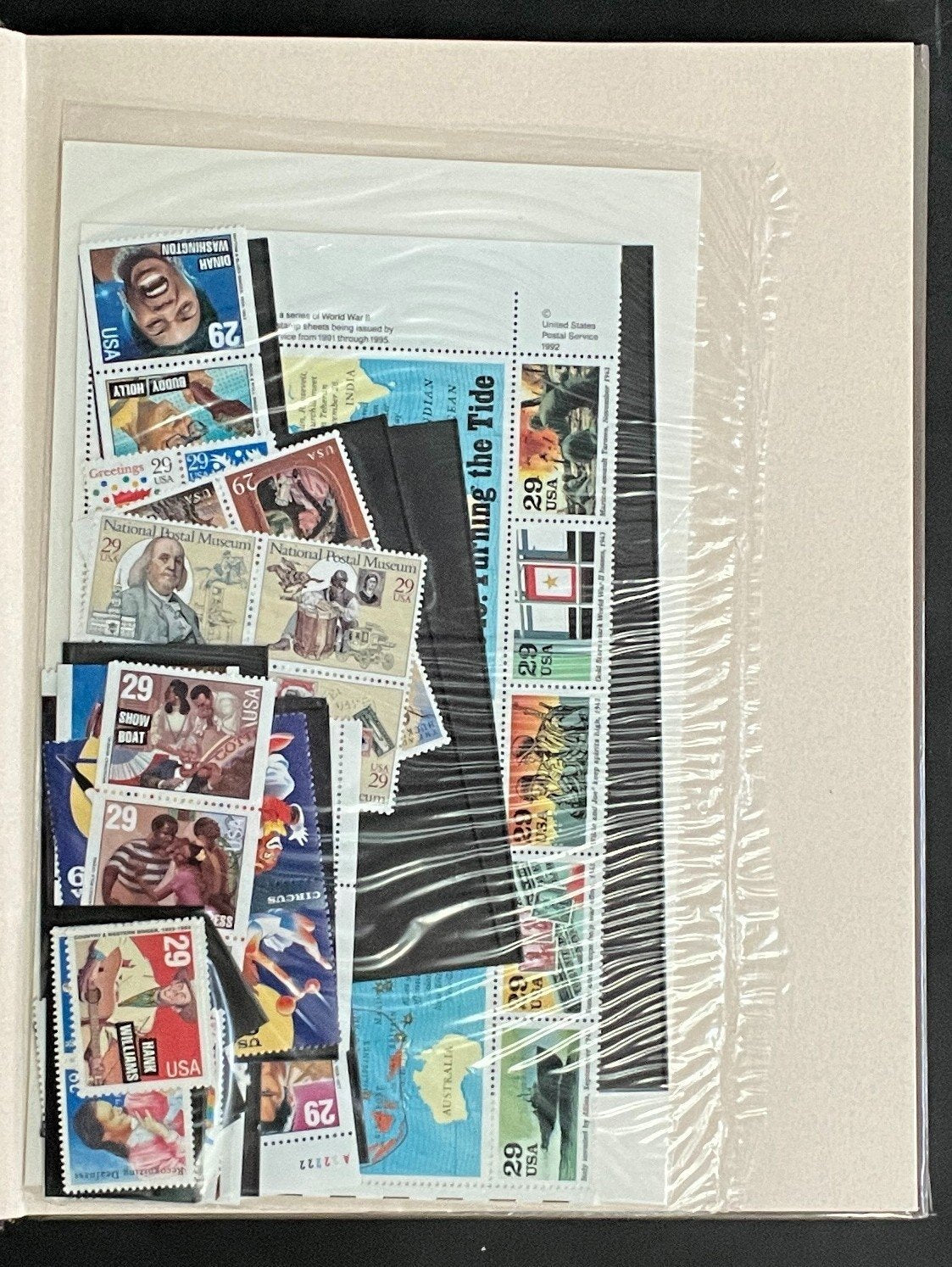 United States 1993 Commemorative Stamp Yearbook published by the USPS. This beautiful book details every stamp issued by the U.S. Postal Service in 1993. Read the stories of the people, places, and occasions that have inspired us as a country, preserve each of the commemorative stamps directly in the book for years to come. General condition is fine to very fine (F/VF) or better, but there may be a few faults mixed in. Full photos of collection will be listed below.