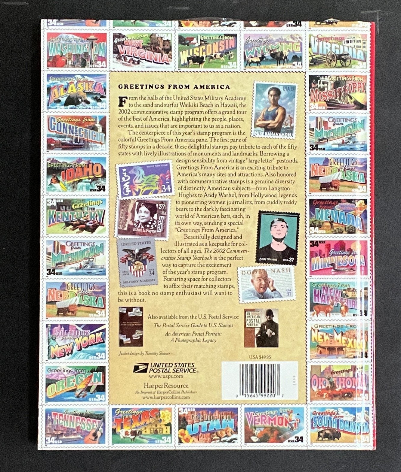 United States 2002 Commemorative Stamp Yearbook published by the USPS. This beautiful book details every stamp issued by the U.S. Postal Service in 2002. Read the stories of the people, places, and occasions that have inspired us as a country, preserve each of the commemorative stamps directly in the book for years to come. General condition is fine to very fine (F/VF) or better, but there may be a few faults mixed in. Full photos of collection will be listed below.