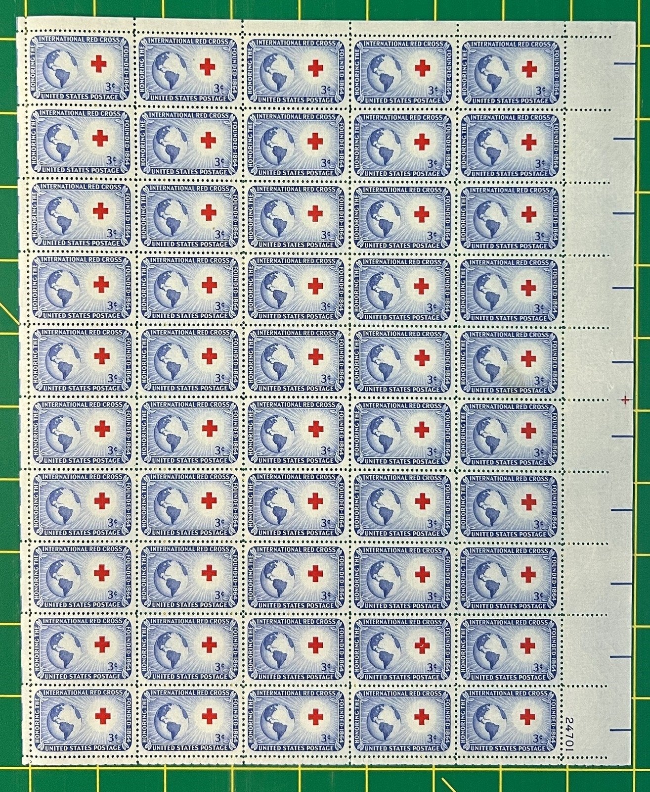 US 1016 MNH Sheet 3 Cent International Red Cross ZAYIX 0825L1585