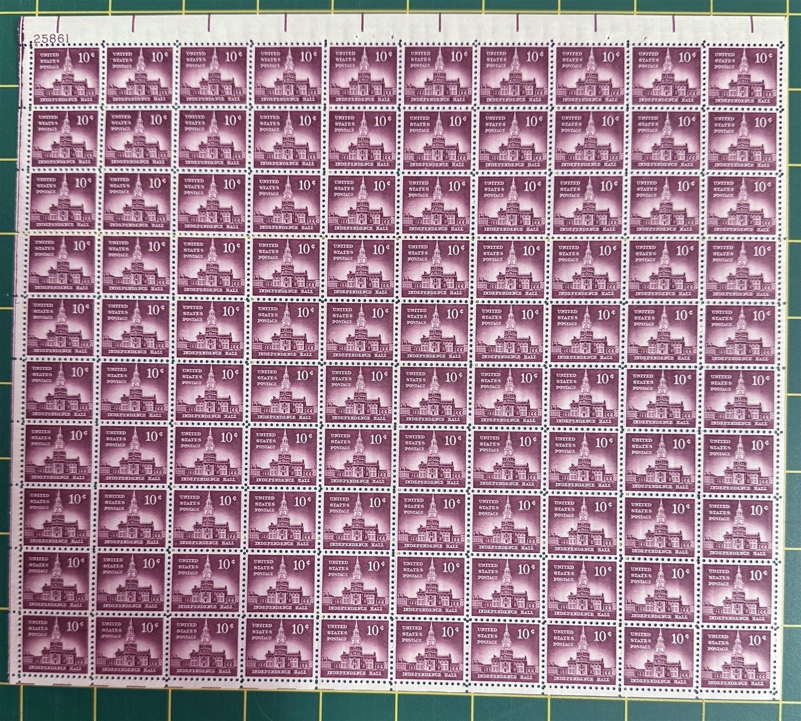 US 1044 MNH Sheet 10c Independence Hall, Liberty Series ZAYIX STAMPS 0625L0045