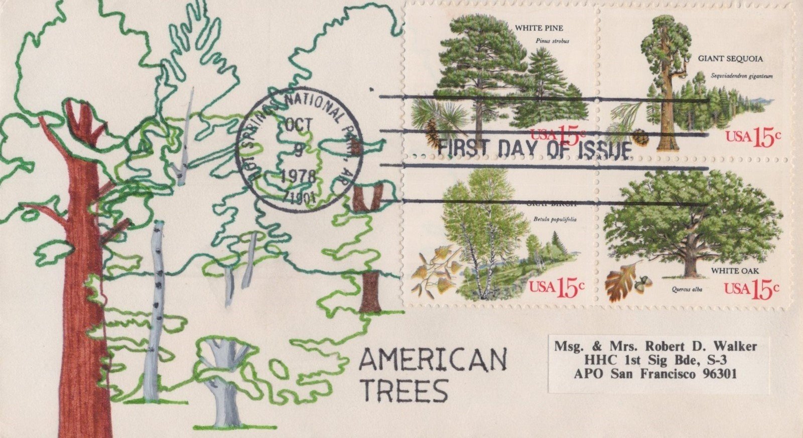 US 1764-1767, 1767a American Trees 5 Hand-drawn cachet FDC ZAYIX 031923SM104