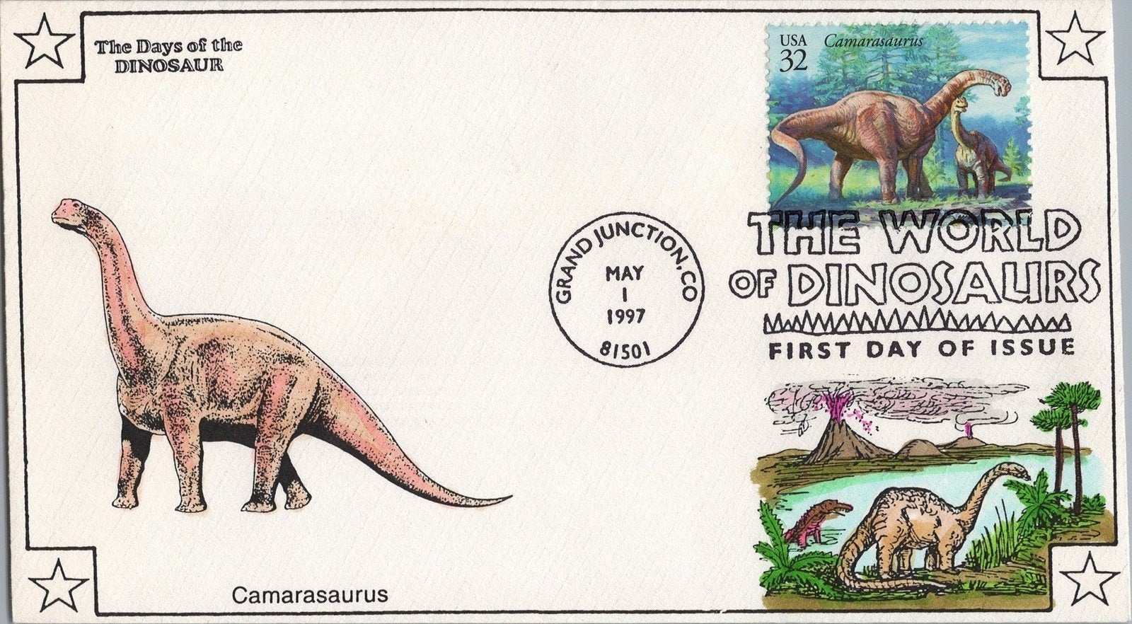 US 3136 FDC Dinosaurs Color Cachet Volcano Scene Camarasaurus ZAYIX 060922SM24