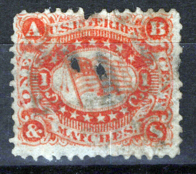 US Revenue Match Stamps RO23a F/VF, A.B. & S., 2 holes, tear ZAYIX 0924MAR108