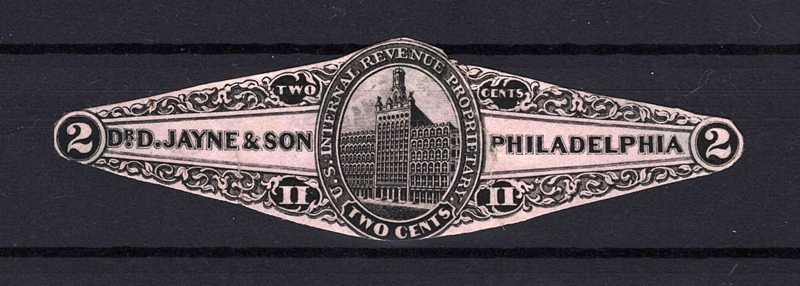 Dr. D. Jayne & Son, 2c black, die cut on pink paper