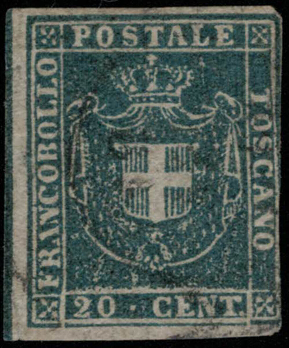ZAYIX 1860 Tuscany Italy Italian States 20 used 20c blue Coat of Arms 031922-S06