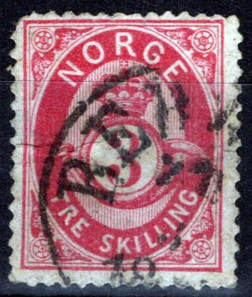 Norway 18 used 3 sk rose Post Horn and Crown 081822S02