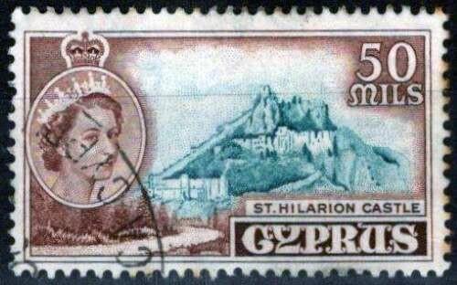1955 Cyprus 178 used 50m red brwn & aqua St. Hilarion Castle ZAYIX 020123S26M