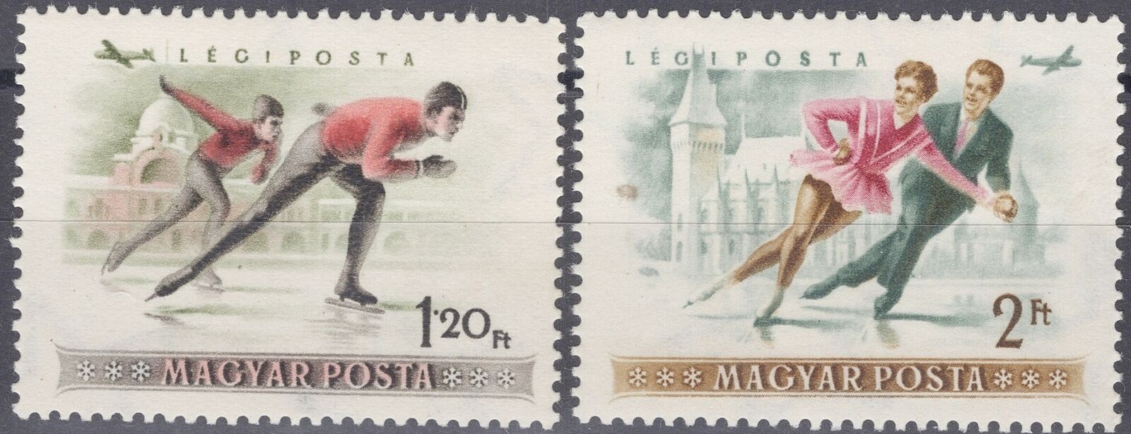 Hungary C163, C165 MNH 1955 Winter Sports Figure Skating Ice Racing ZAYIX 051222S33
