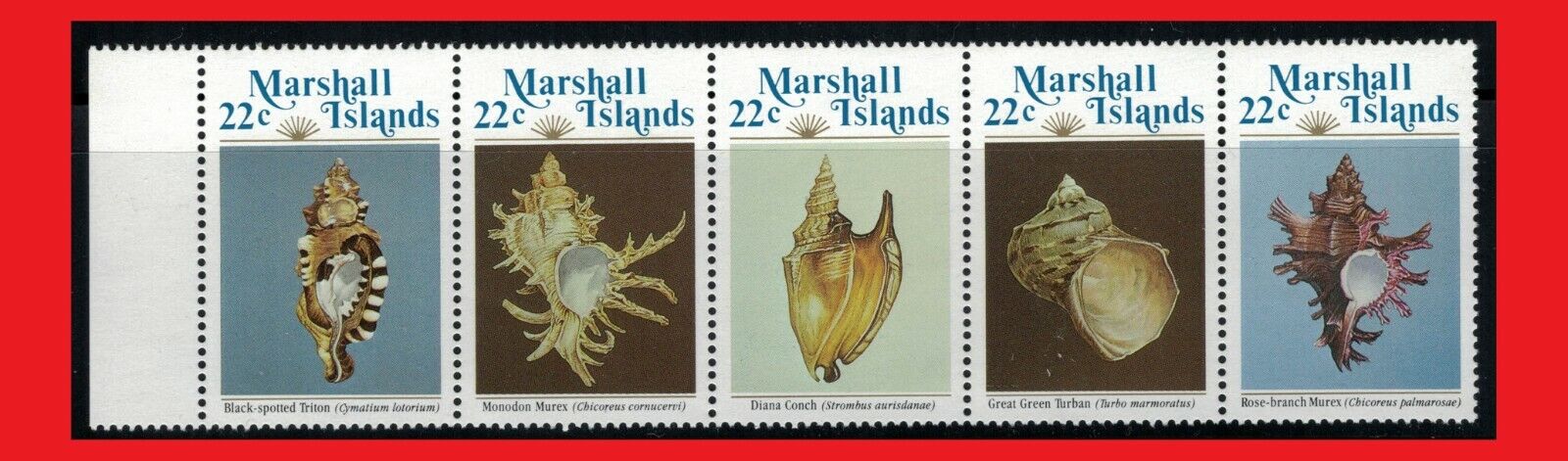 Marshall Islands 69a MNH strip of 5 Fish & Marine Life Seashells ZAYIX 1114SB10M