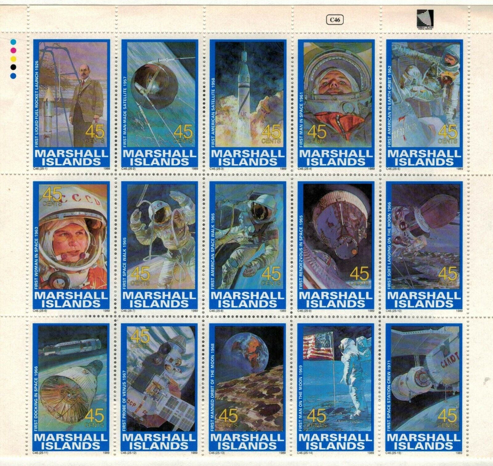 Marshall Islands 345 MH Space Exploration, Rockets, Planets broken sheet, Catalog Value $25.00, Zayix Stamps 021622SL09
