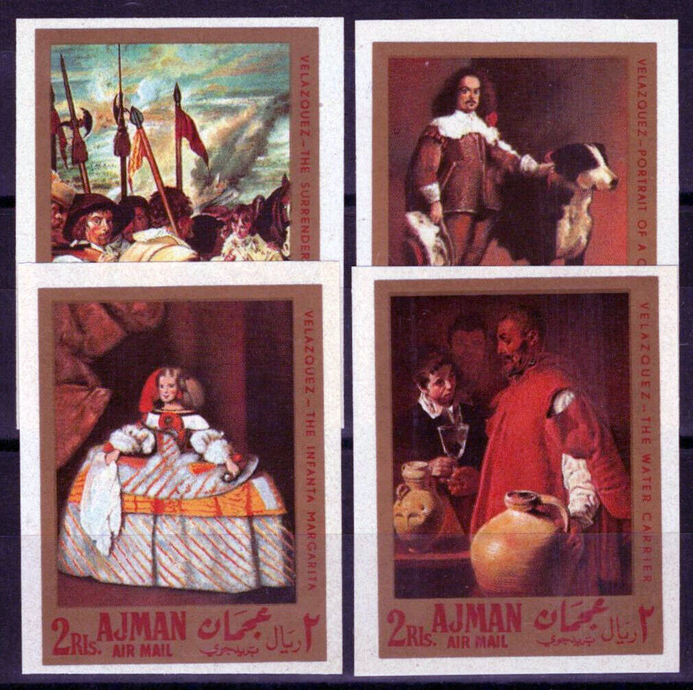 ZAYIX Ajman 218 B-221 B MNH Imperf Paintings Spanish Painter Dogs 041623S99M