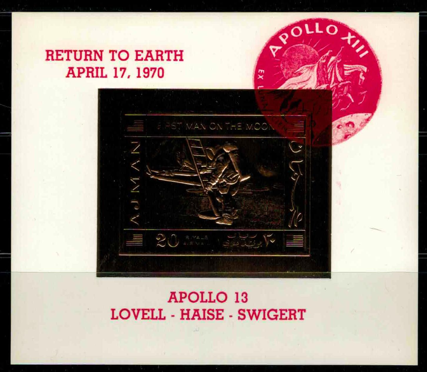 ZAYIX Ajman Block 187 MNH Gold Foil Overprint Space Apollo XIII 080323SM21M