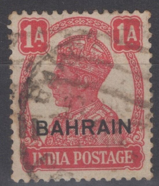 Bahrain 41 used 1a carmine rose George VI overprint on India stamp