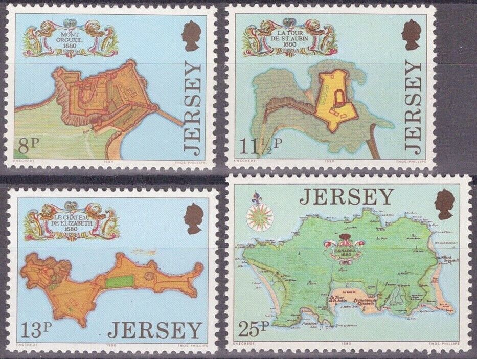 ZAYIX Great Britain - Jersey 222-225 MNH Jersey Map Mont Orgueil Fortress