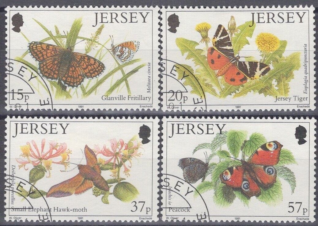 ZAYIX Great Britain Jersey 568-571 CTO Insects Butterflies Moths 042922-SM133