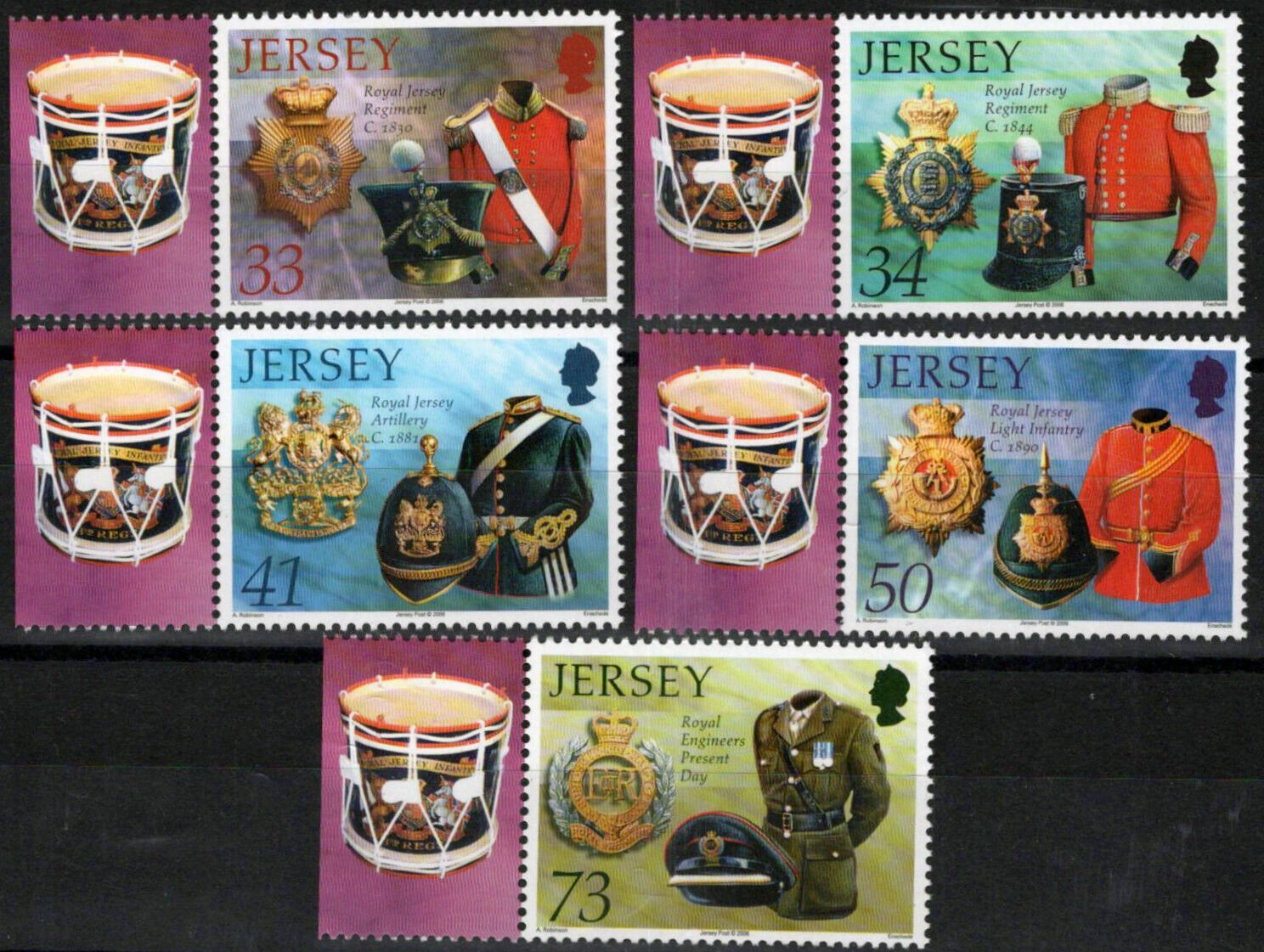 ZAYIX Jersey 1196-1200 MNH Royal Jersey Militia Uniforms Military War 092023S40M
