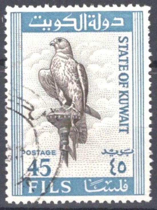 Kuwait 296 Used - 45f blue Falcon Raptor Birds