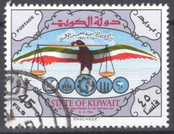 Kuwait 314 Used - Eagle, Banner, Scales - birds - Raptors