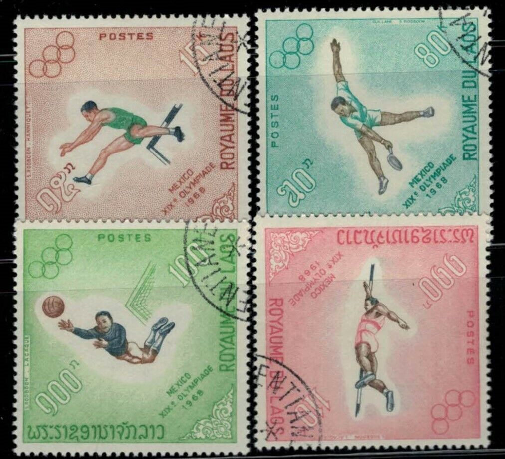 ZAYIX - Laos 178-181 CTO Olympic Games Mexico City Sports Soccer